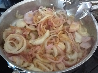 Chop 8 – 10 slices of thick cut bacon into pieces and cook bacon until crisped and brown. Remove your bacon with a slotted spoon and set aside.